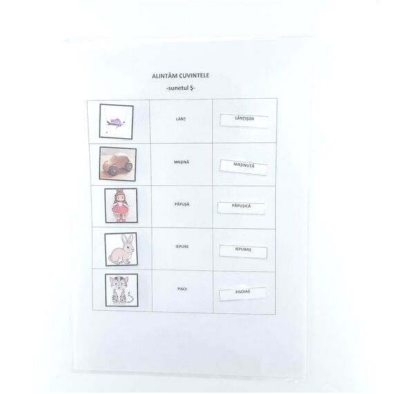 În cazul în care produsul nu mai este în stoc sau doriți mai multe materiale logopedice, se pot realiza pe comandă la numărul de telefon 0762639680.