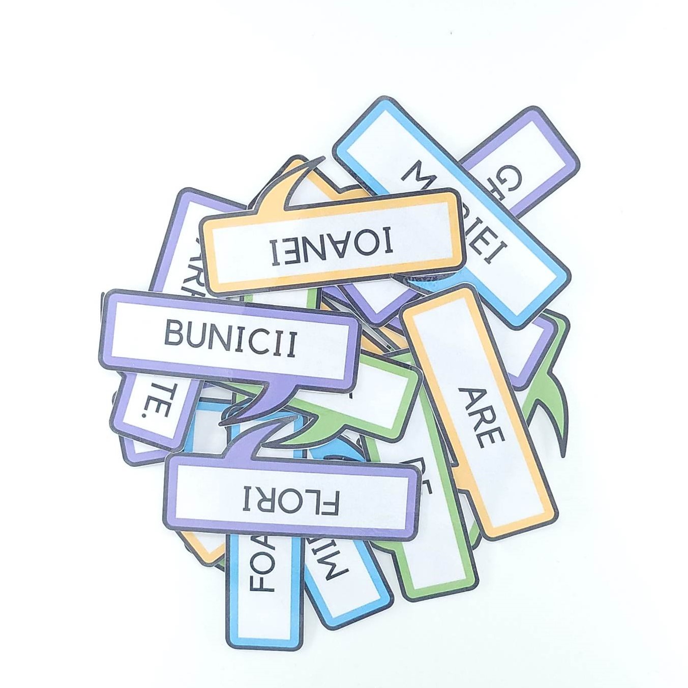 " ORDONEAZĂ CUVINTELE" reprezintă un material logopedic ce presupune citirea unor cuvinte si ordonarea acestora pentru a forma propozitii din 5-6 cuvinte. Scopul jocului este ca activitatea logopedică să fie distractivă și atractivă pentru copii. Materialul este util pentru pregătirea pentru școală, dar și în cazul dislexiei.
