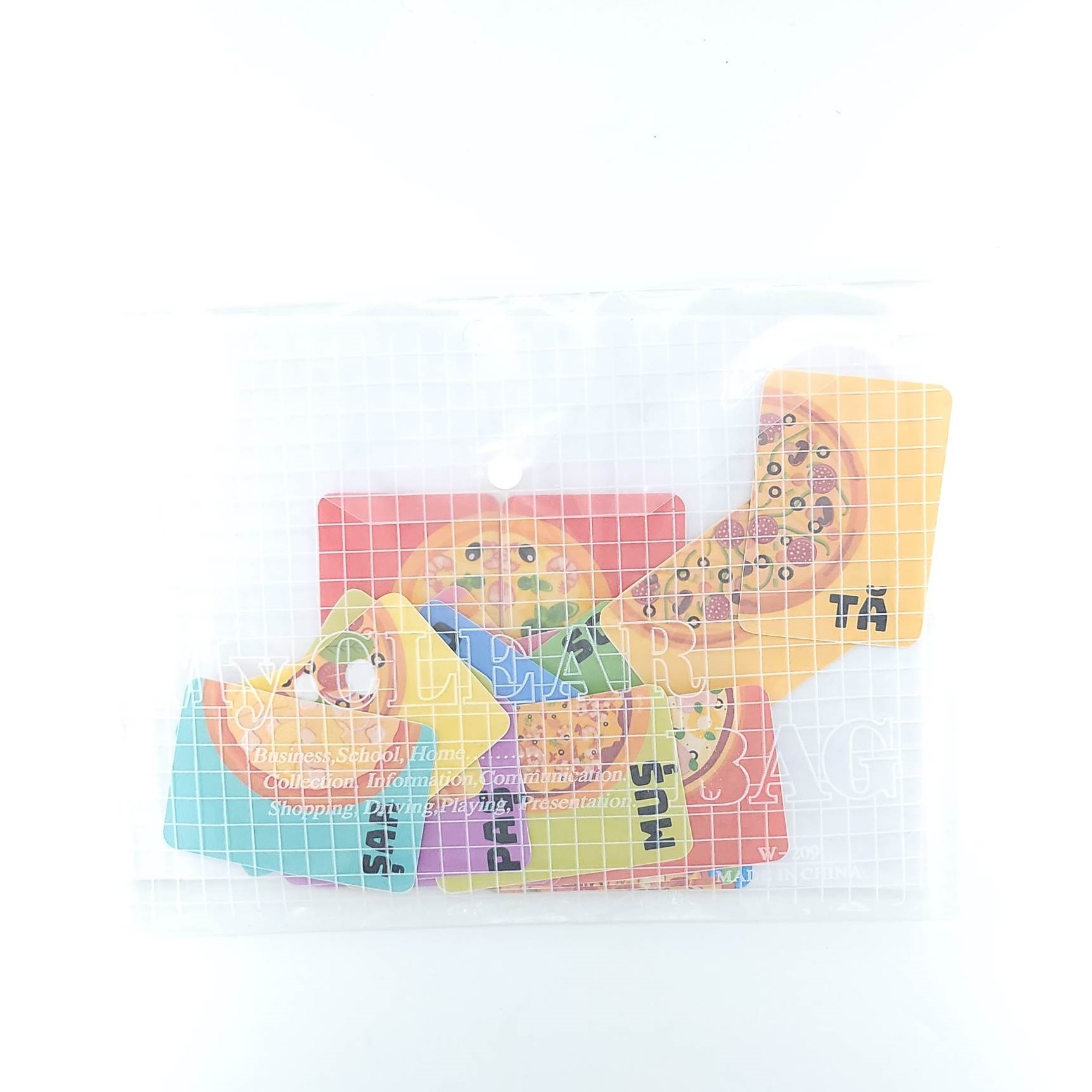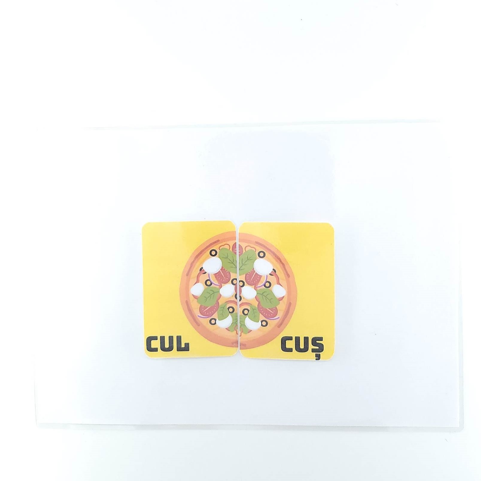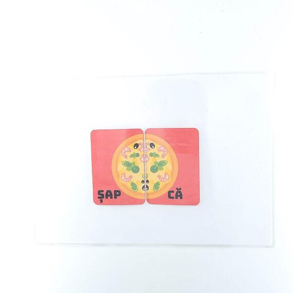 Materialul este compus dintr-o planșă plastifiată albă  și jumătăți de pizza pe care sunt scrise cuvinte cu sunetul Ș. Jumătățile de pizza se prind prin intermediul scaiului de planșă.