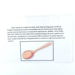 " Roata lui Ș" reprezintă un material logopedic ce presupune pronunțarea propozițiilor ce conțin cuvinte cu sunetul Ș aflat în poziție inițială, mediană și finală. Scopul jocului este ca activitatea logopedică să fie distractivă și atractivă pentru copii.  Materialul este compus dintr-o...